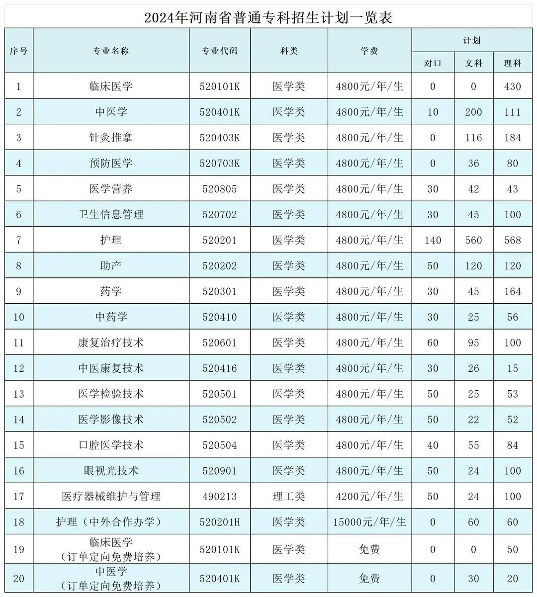 2024年河南省招生专业计划表