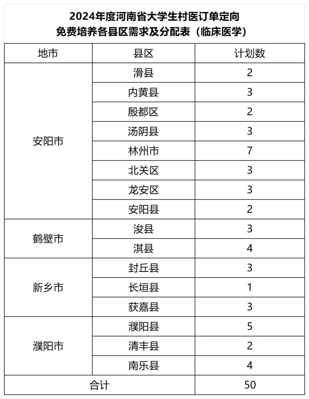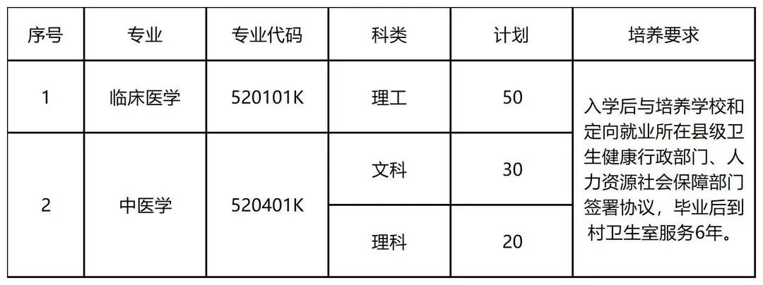 《中共河南省委办公厅、河南省人民政府办公厅关于印发 <河南省乡村医疗卫生体系改革提升攻坚行动实施方案>的通知》(厅文 〔2023〕30号)、《河南省人民政府办公厅关于印发河南省加快医学教育创新发展实施方案的通知》 (豫政办〔2021〕12号)等文件精神,濮阳医学高等专科学2024年大学生村医订单定向免费培养计划为100名。