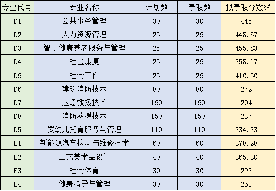 我校按照省教育厅审核通过的《三门峡社会管理职业学院2024年单独考试招生章程》进行录取,录取过程中遇到总分相同的考生,按考生“职业技能”测试成绩、文化知识考试总成绩、语文成绩、数学成绩、英语成绩进行依次录取。各类单科成绩为零的或单科缺考的考生不予录取。现将我校2024年单独考试招生拟录取分数线公示如下: