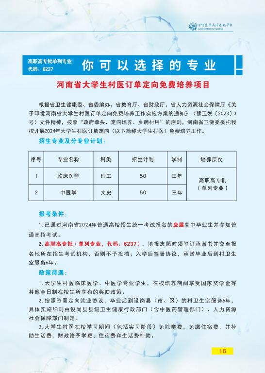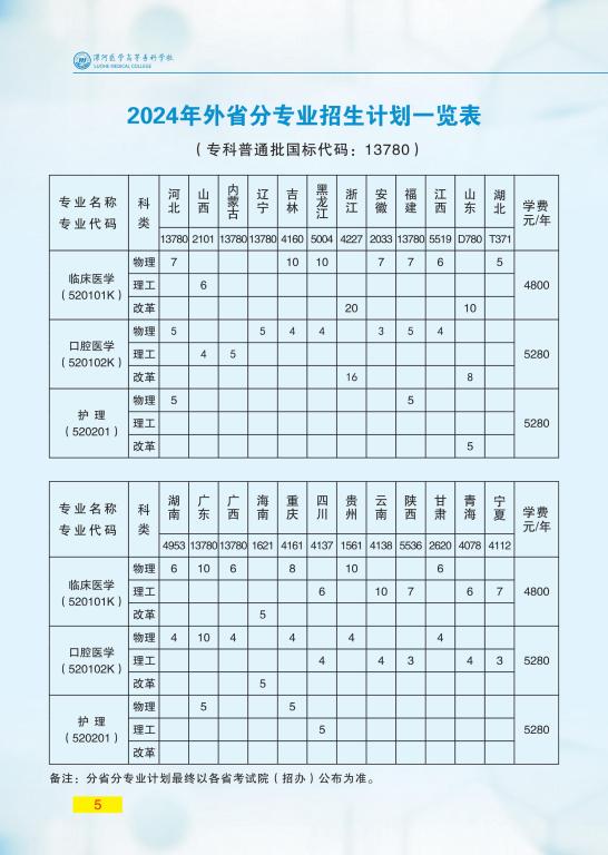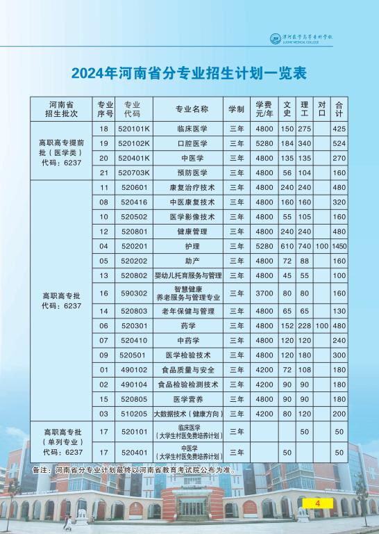 漯河医学高等专科学校2024年招生简章