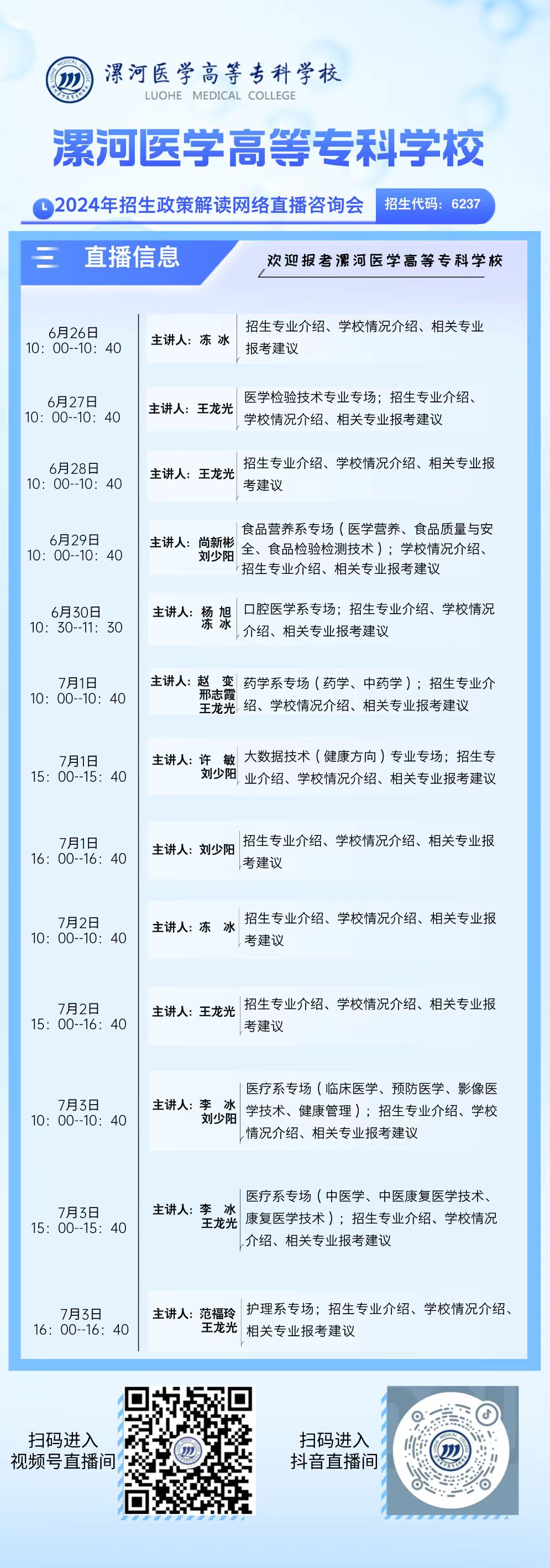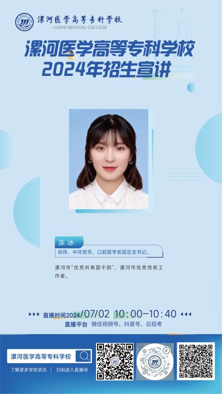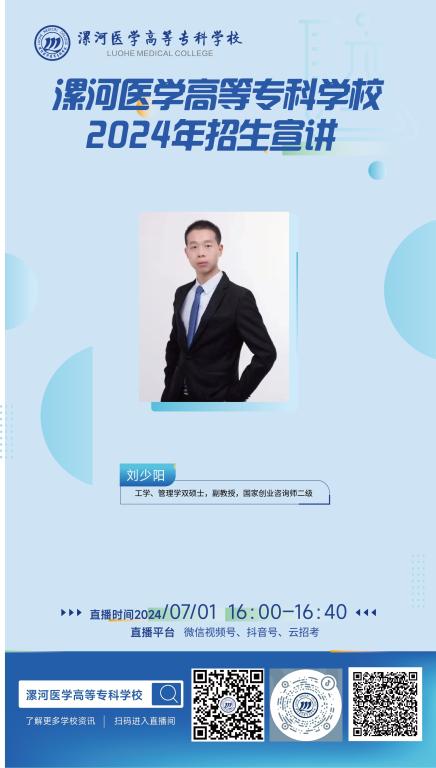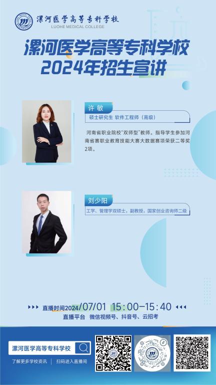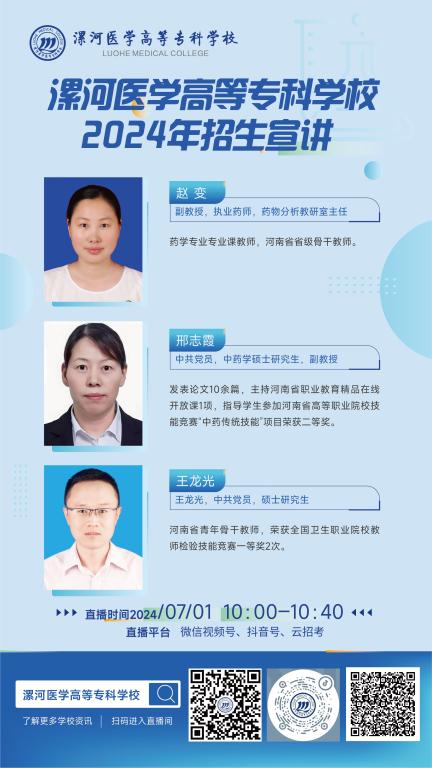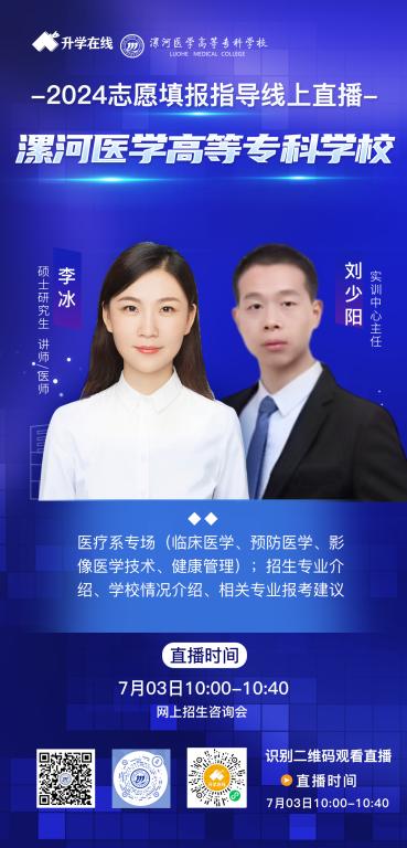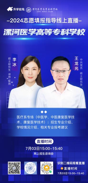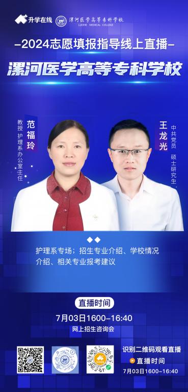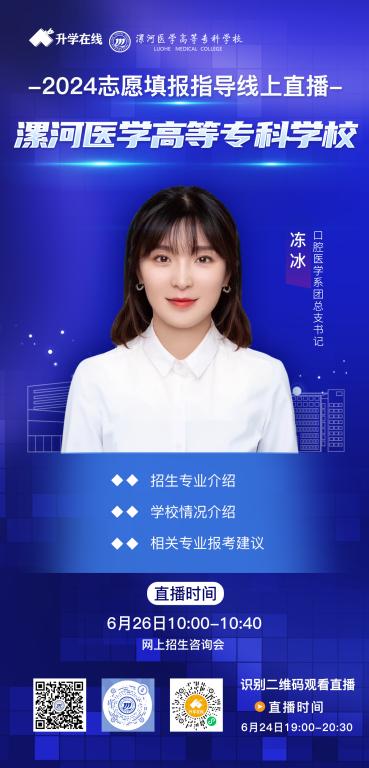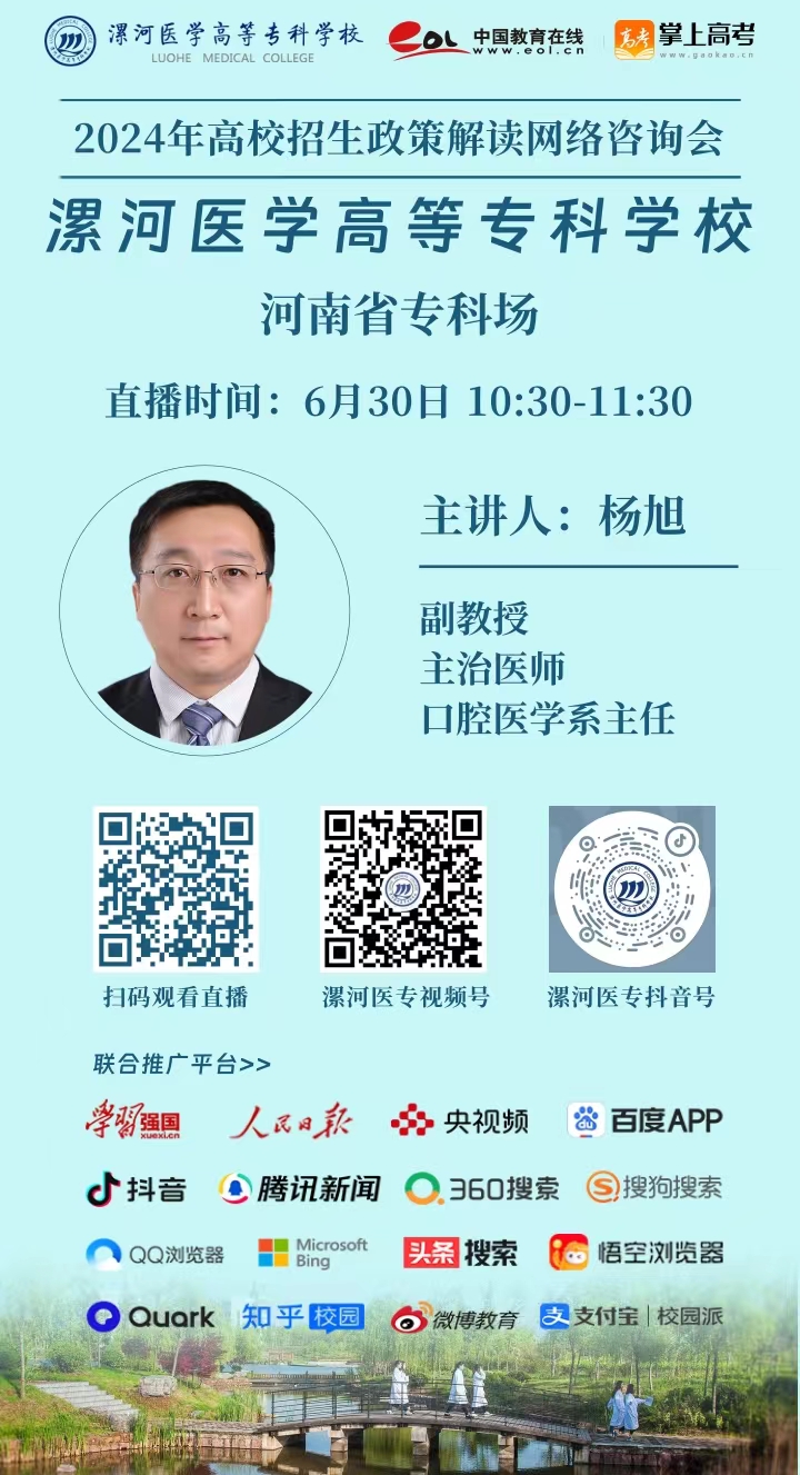从6月26日-7月3日陆续在学校微信视频号、抖音、中国教育在线、升学在线、云招考开讲,为您带来最权威的专业介绍,欢迎考生、家长观看。