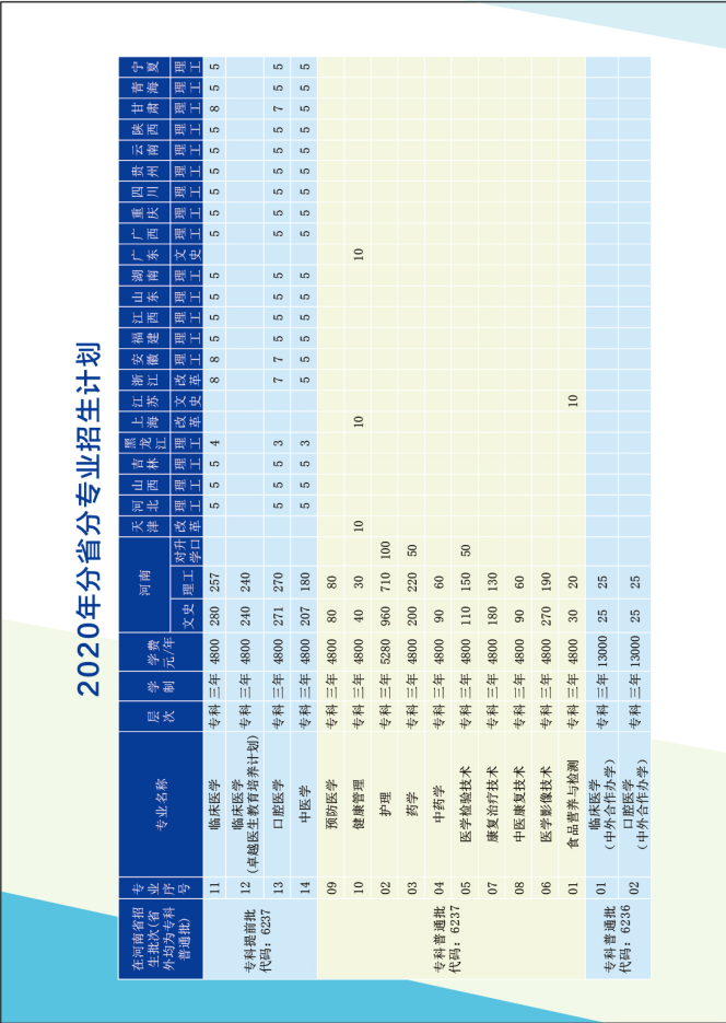 2020年分省分专业招生计划一览表