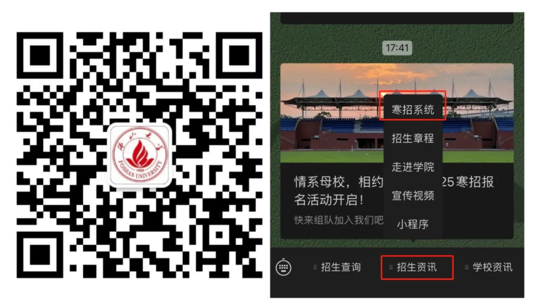 2.关注“佛山大学本科招生办”公众号,点击“招生咨询”-“寒招系统”
