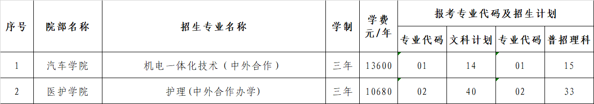 三、中外合作办学专业(学校代码6335)