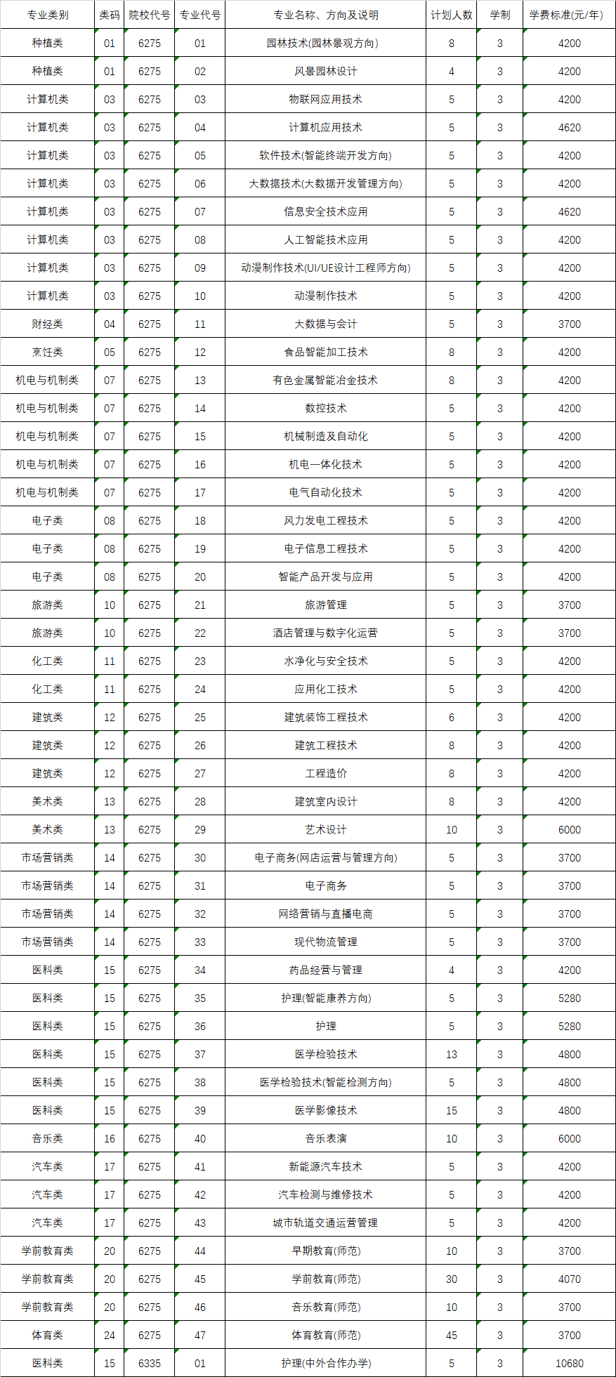 一、高职高专普通类(学校代码6275)