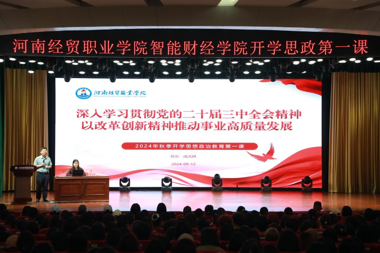 为深入学习贯彻党的二十届三中全会精神,9月12日晚,智能财经学院秋季开学思政第一课在1406报告厅举行。校长成光琳以《深入学习贯彻党的二十届三中全会精神,以改革创新精神推动事业高质量发展》为题作专题报告。智能财经学院500余名师生聆听讲座。