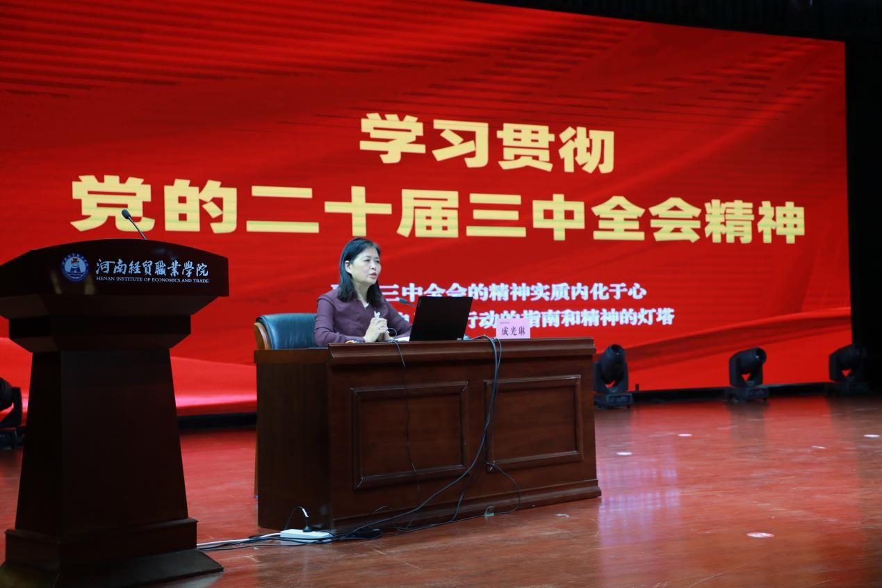 成光琳从“明晰发展大势、学习全会精神、了解学校历史、确立奋斗目标”四个方面为师生们阐释了“为什么开设思政课、怎么学好思政课、青年大学生如何在推进中国式现代化中担负历史使命、扛起时代重任”。成光琳强调,要学好《形势与政策》,与时代同行,与社会同频;要学深悟透全会精神,内化于心,外化于行;要了解学校发展历史,珍惜荣誉,添砖加瓦;要心怀祖国勤奋学习,开拓创新,奋发图强。成光琳鼓励同学们要以青春之力践行报国之志,以进取之心涵养厚德品格,以磨砺之路锤炼过硬本领,以奋斗之姿担当时代重任。成光琳的授课深入浅出,旁征博引,既有理论的高度,又有实践的深度,为同学们更好地在践行文化自信,服务“国之大者”、推进“校之大事”中找准自己的青春定位提供了重要指引。