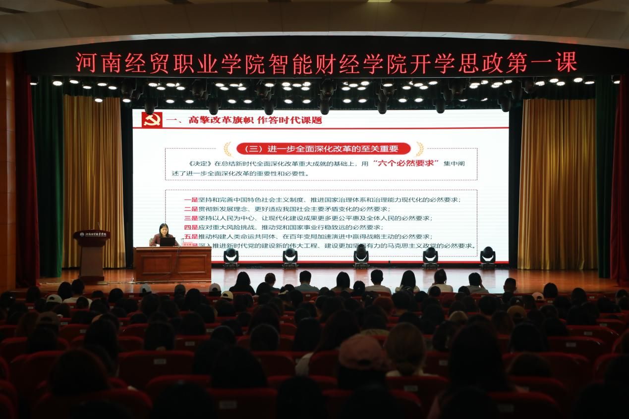 智能财经学院师生纷纷表示,开学思政第一课让他们深受启发和教育。大家充分认识了新时代全面深化改革的成功实践和伟大成就,认清了当前和今后一个时期是以中国式现代化全面推进强国建设、民族复兴伟业的关键时期。师生们一致表示将努力学习、贯彻和落实党的二十届三中全会精神,将坚定不移沿着党中央指引的正确方向奋楫笃行,扛起全面深化改革的时代重任,为实现中华民族伟大复兴的中国梦贡献青春力量。
