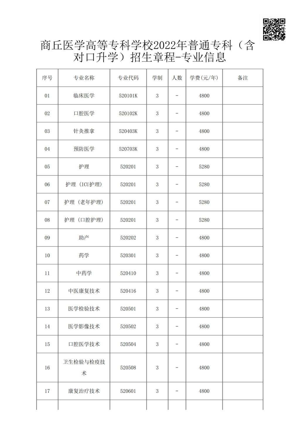 第一条 本章程适用于商丘医学高等专科学校普通专科(含对口升学)招生工作。
