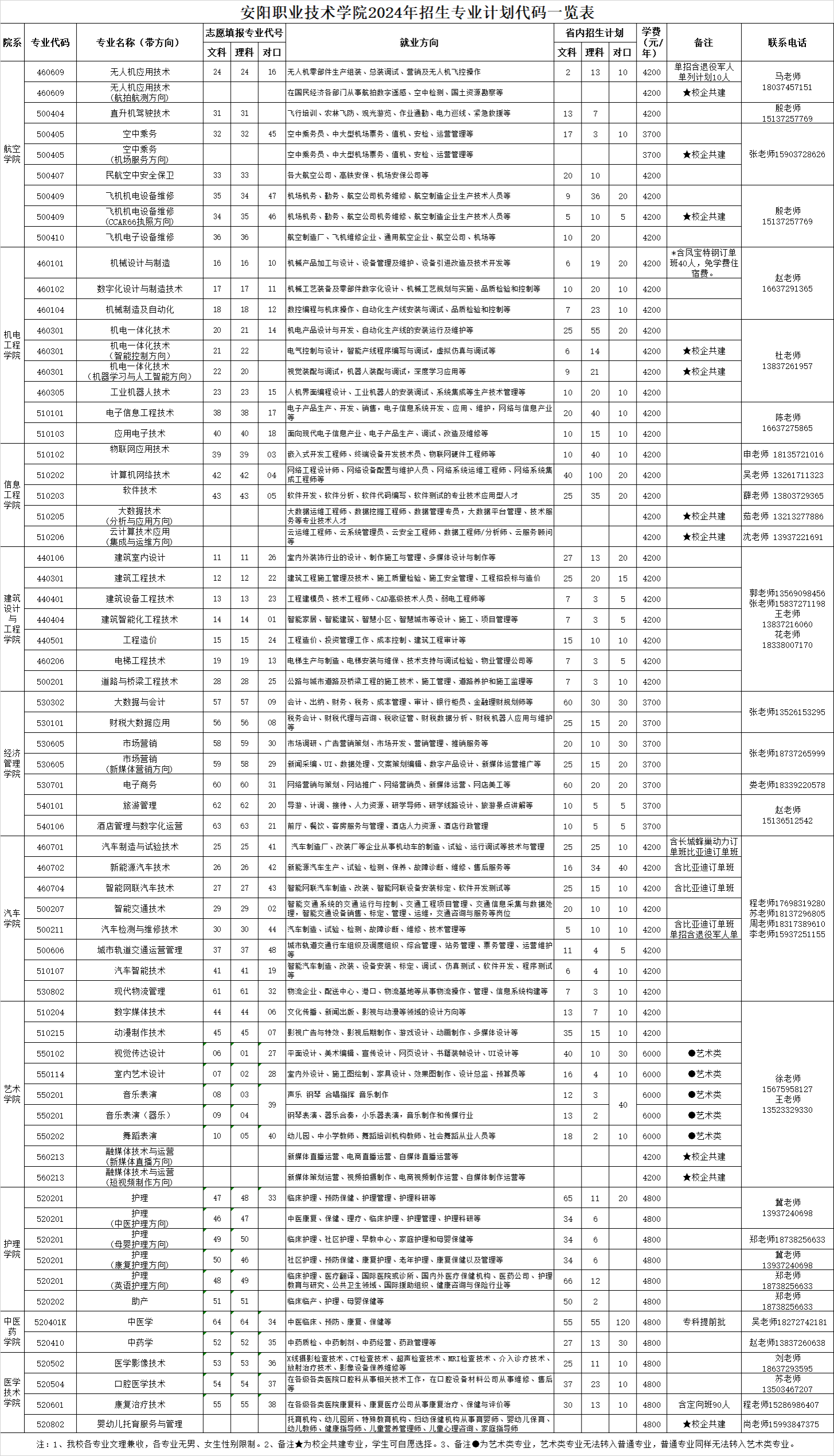 2024年统招专业计划代码表