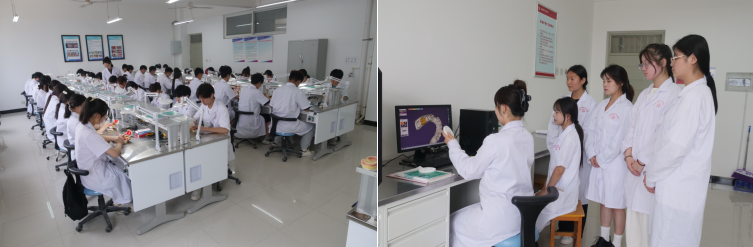 我院于2005年即开设中等口腔修复工艺专业,年招生100余名。2011 年升格为专科教育后,即开设口腔医学技术专业。近二十年来,我院的中等口腔修复工艺专业、高职口腔医学技术专业,生源来自全省各地及山东、贵州、广东、安徽、四川、黑龙江等省区,先后培养了一批又一批的优秀毕业生,成为当地口腔医疗机构的中坚力量,为安阳区域口腔医疗事业的发展做出了重要的贡献。经过近20年建设发展,我院口腔医学技术专业拥有一支综合素质优良,业务扎实技能强,爱岗敬业,教风严谨,乐于奉献的教师队伍。专业带头人毕业于河南医科大学口腔医学专业,具有丰富的临床和教学经验,教学科研能力、专业实践能力及管理较强。专业教师队伍中高级职称18人,中级职称10人,初级职称4人,81%为“双师型”教师。外聘专业教师均具备高级技术职称,临床实践经验丰富,教学能力强,为确保理论教学与实践教学质量和水平奠定坚实基础。学院每年安排专业教师到合作单位进行临床实践,确保专业课每名教师每年有 2个月的临床实践,有力地促进了“双师型”教师的培养和成长。培养目标: