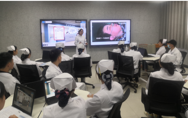 基础护理虚拟仿真实训室:可实现学生进行基础护理虚拟仿真练习,并可实现智慧教学功能,进行分组教学。