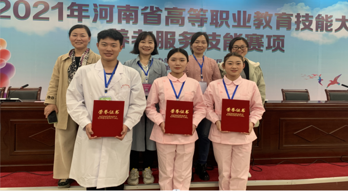 2021年河南省高等职业教育技能大赛健康与社会照护赛项获得优秀组织奖,护理学院学生王卫娟、齐文礼分获个人一等奖1名、二等奖1名。