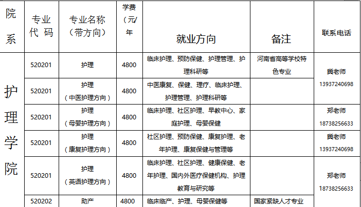 护理、护理(中医护理方向)、护理(母婴护理方向)、护理(康复护理方向)、护理(英语护理方向)、助产。王牌专业——护理