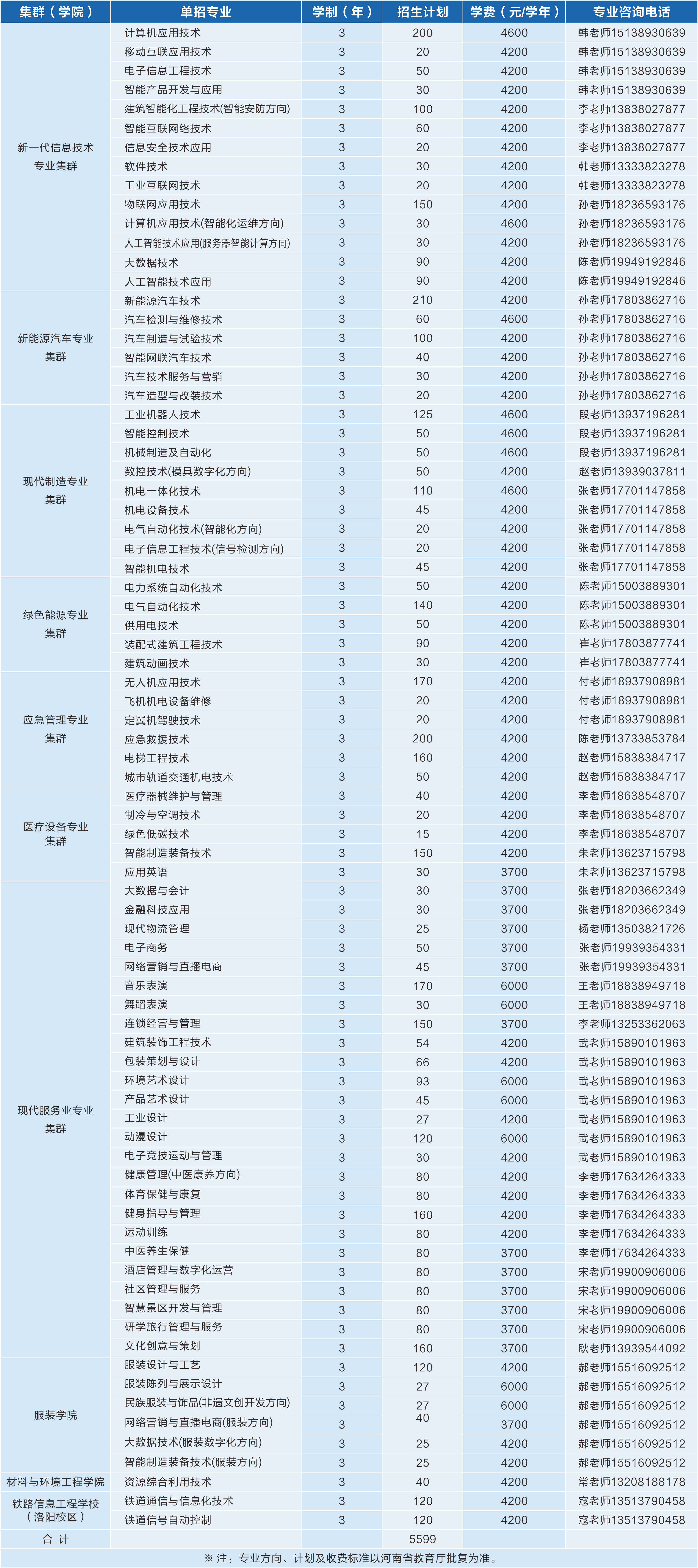 2024年单招专业和计划