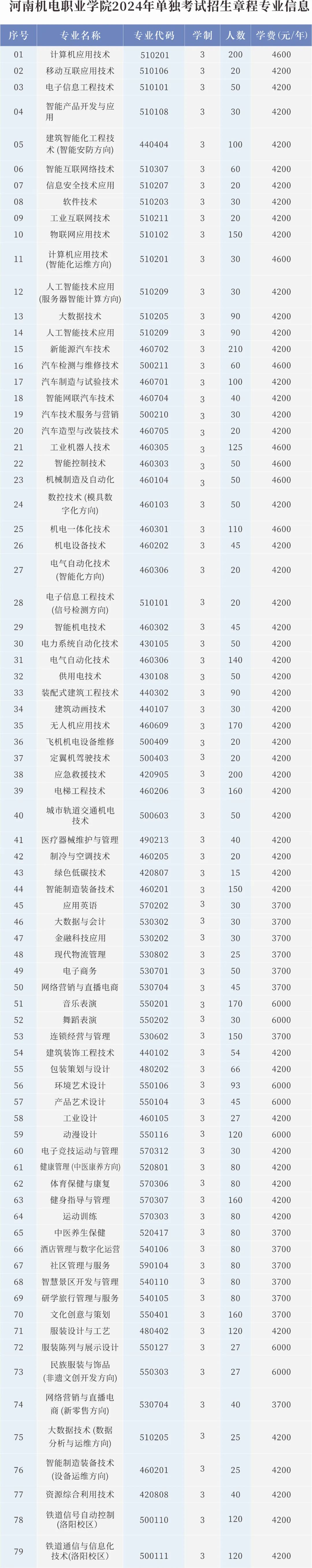 见附件“河南机电职业学院2024年高职单招专业和计划”。