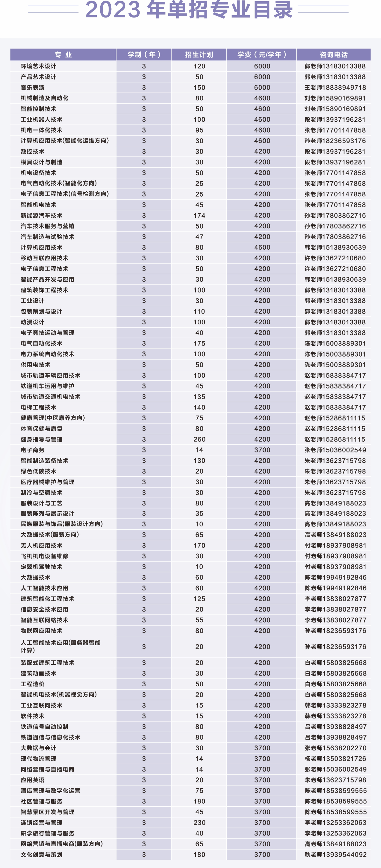 见附件“河南机电职业学院2023年高职单招专业和计划”。