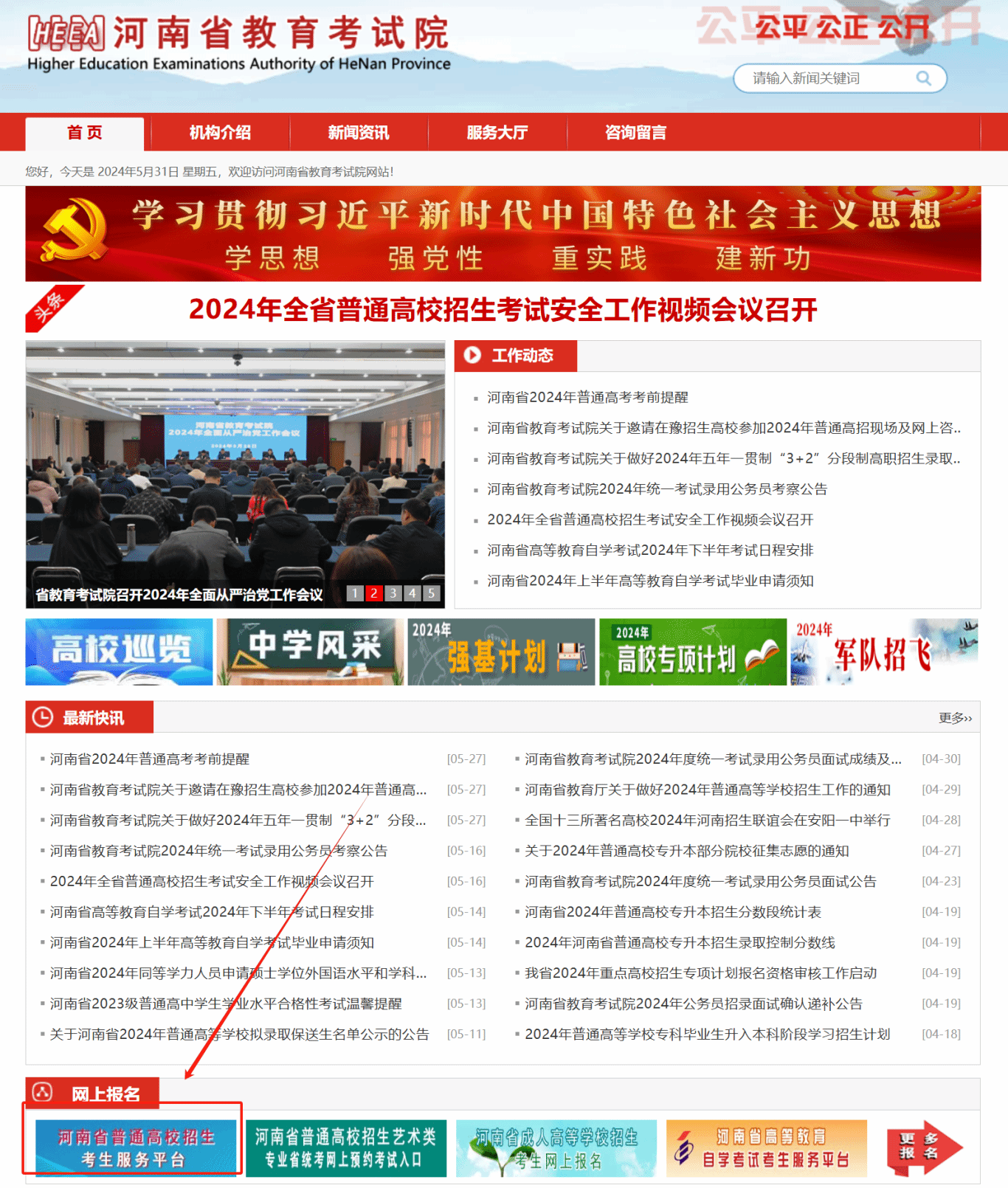 (1)登录河南省教育考试院网站(www.haeea.cn),点击最下方服务大厅里的“河南省普通高校招生考生服务平台”链接,或者直接访问河南省普通高校招生考生服务平台(pzwb.haeea.cn)。