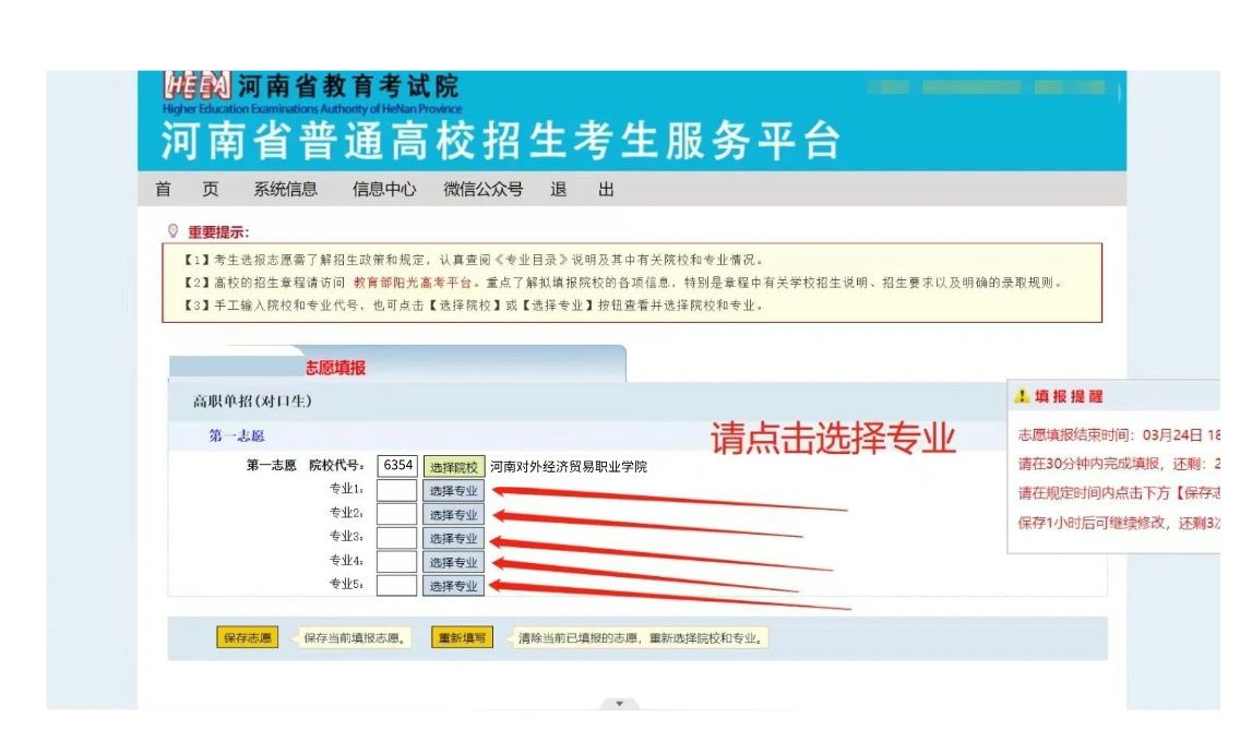 (4)进入志愿填报页面后,填报区域右侧有一个倒计时提醒,志愿填报必须在30分钟内完成。