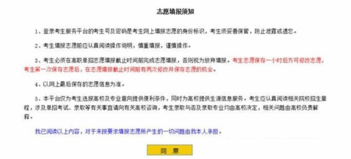 (3)考生可以进行不超过两次的志愿修改,以网上最后一次保存的志愿为准。填报时间截止后将无法补报和更改,提醒广大考生按时认真填报志愿。