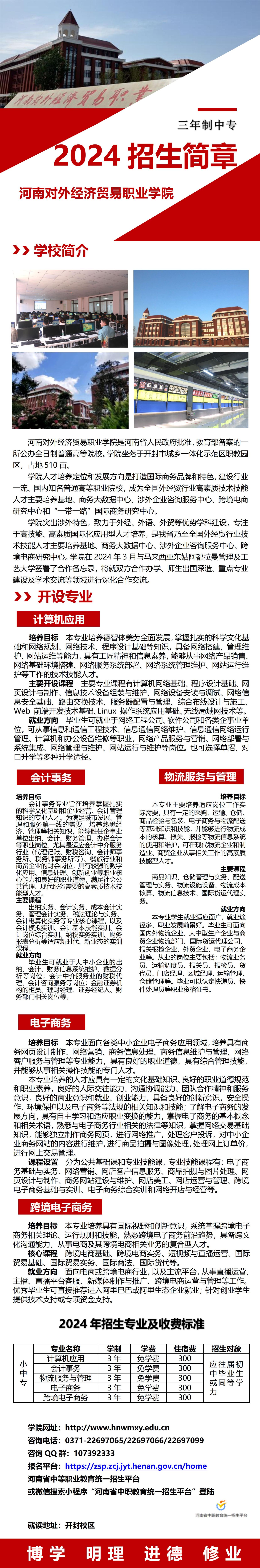 河南对外经济贸易职业学院中专部2024年三年制中专招生简章