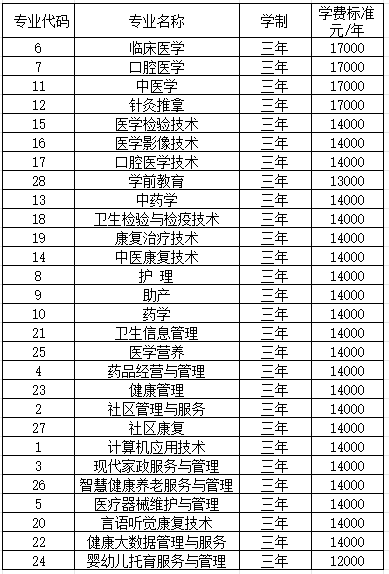 二、河南省对口升学专科批各招生专业代号、学费一览表