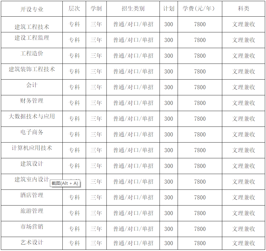注:专业和招生计划以省教育厅公布为准,具体收费标准以省发改委公布为准。收费标准:1.住宿费:1500元/生/年(配备标准:上床(0.9Mx2M)下桌、空调、直饮水、室内独立卫生间、室内独立洗澡间、热水器、宽带无线网)。