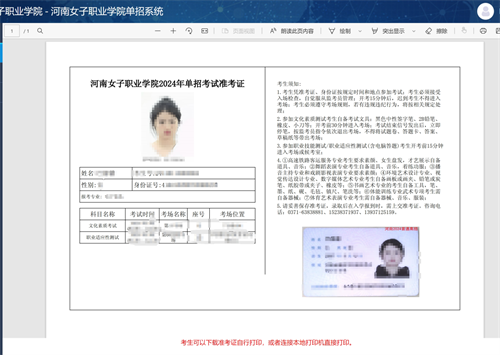 http://kzbm.henz.edu.cn:10825/newlogin进入我校单招准考证打印系统。