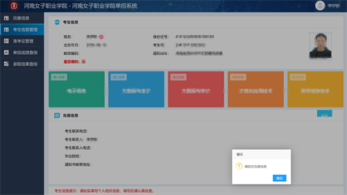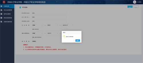 第一次登录需要完善资料,请务必填写真实有效的考生信息。