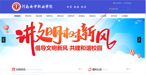 百度搜索“河南女子职业学院”或直接输入网址