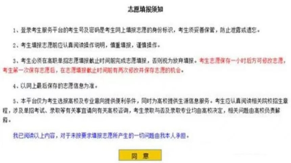1、考生志愿保存一小时后方可修改志愿,在志愿填报时间内可进行不超过两次的志愿修改,以网上最后一次保存的志愿为准,填报时间截止后将无法更改。