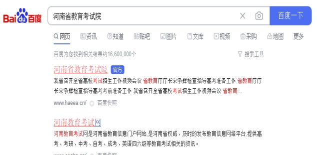 (http://www.haeea.cn/),或在搜索引擎中输入“河南省教育考试院”,点击带有“官方”标识的网站。