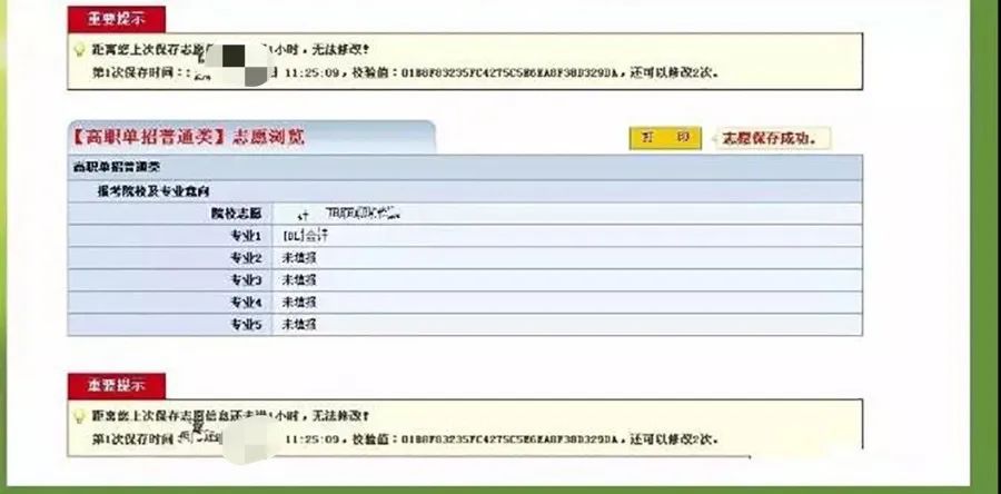 (2)志愿保存成功后,在规定的时间内考生还有2次修改志愿的机会。