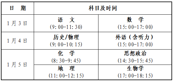 适应性演练测试时间为2025年1月3日-5日,具体安排如下:
