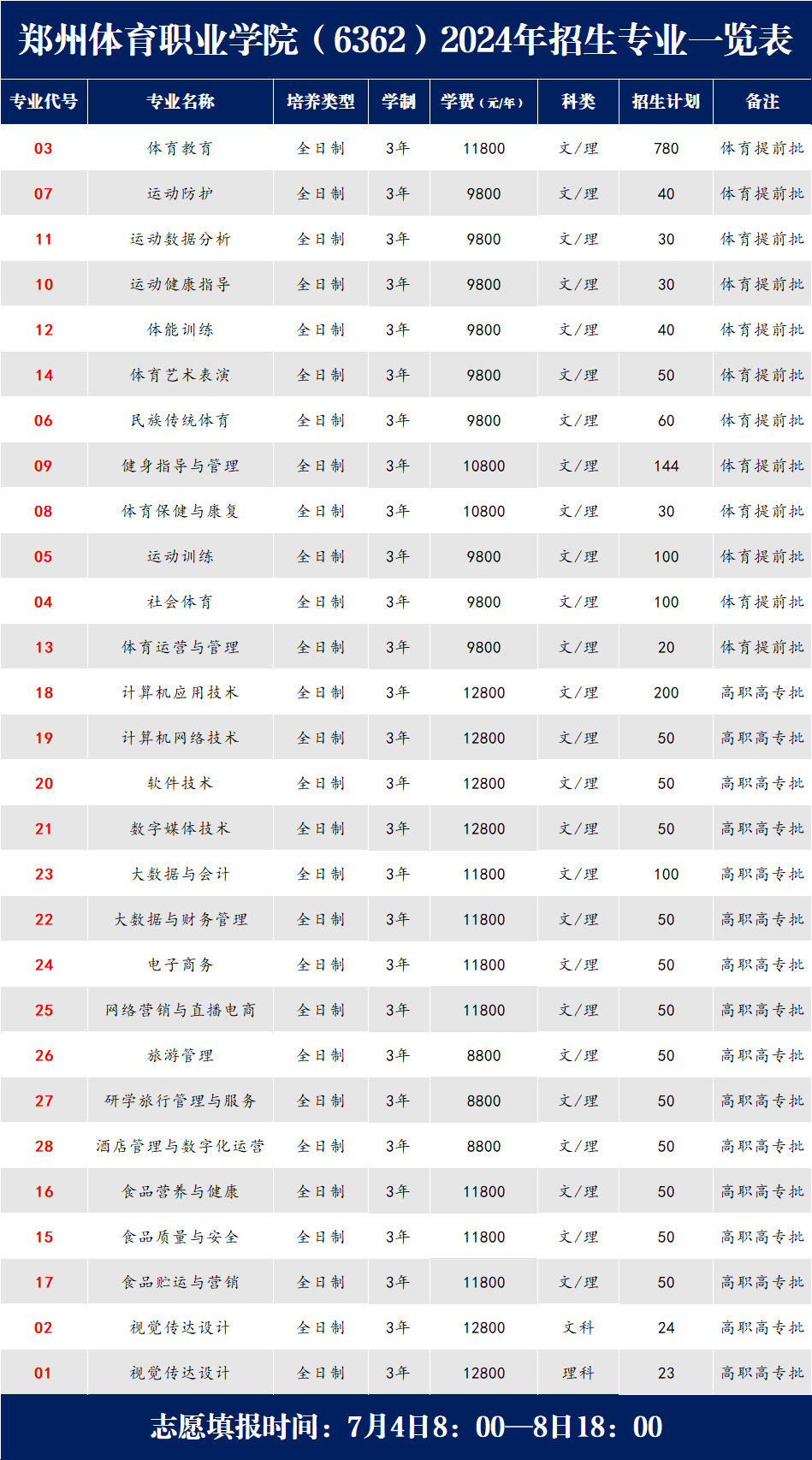 郑州体育职业学院2024年招生专业有哪些?