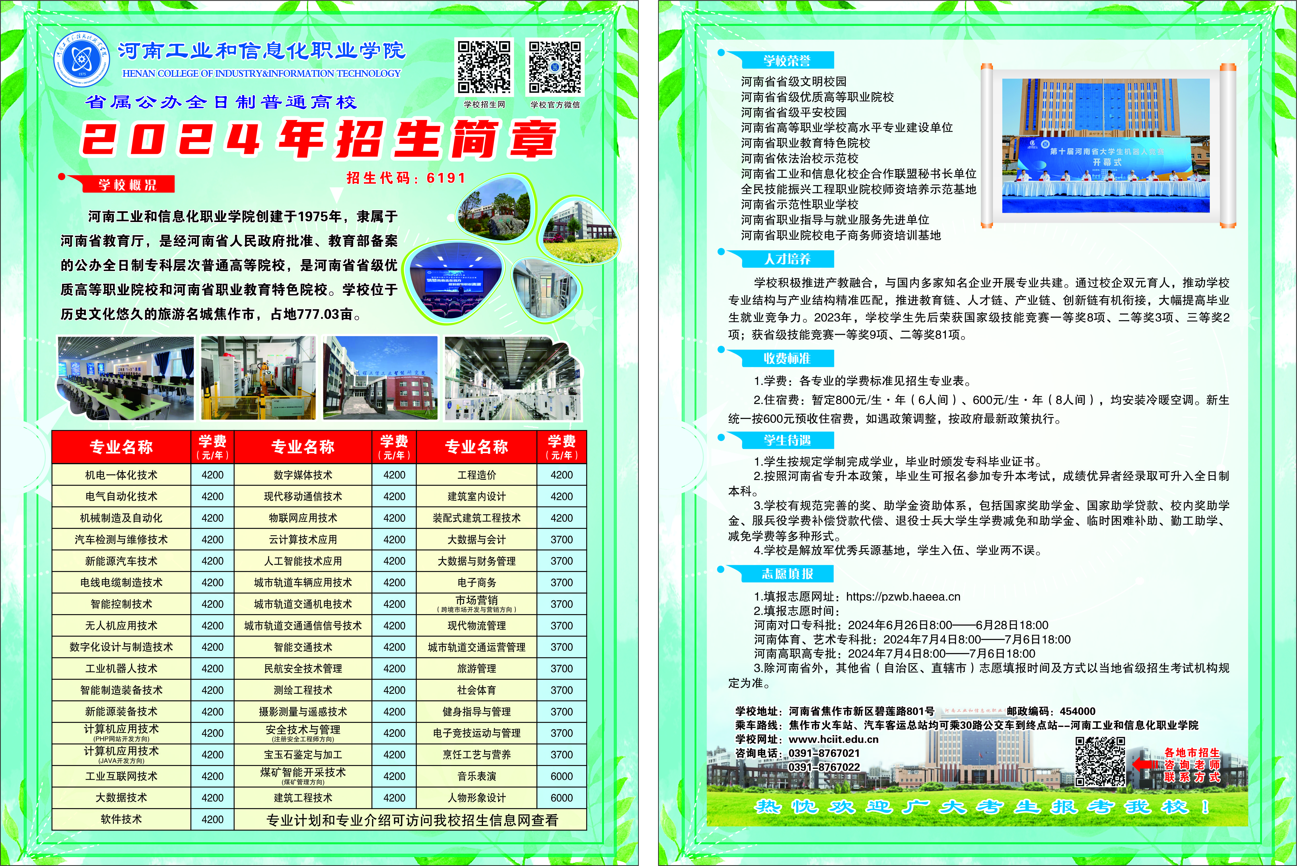 河南工业和信息化职业学院2024年招生简章(单页版)