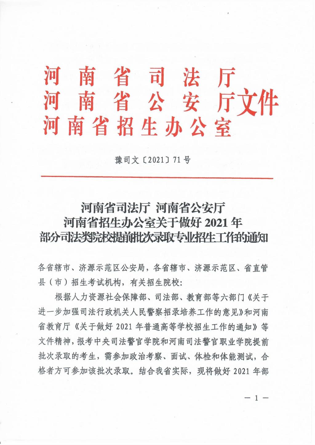 关于做好2021年部分司法类院校提前批次录取专业招生工作的通知