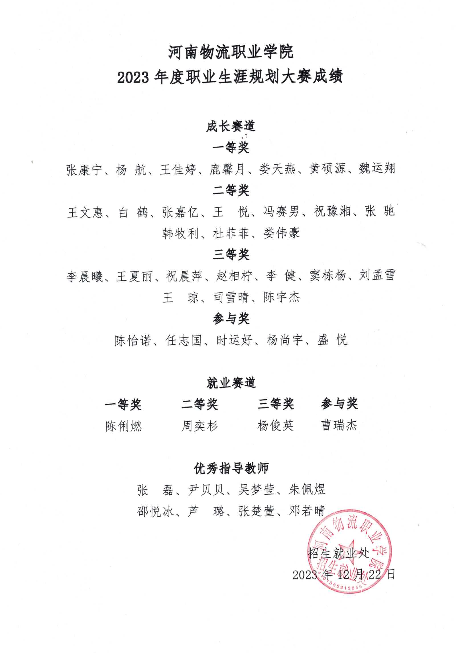 河南物流职业学院 2023年度职业生涯规划大赛成绩公布