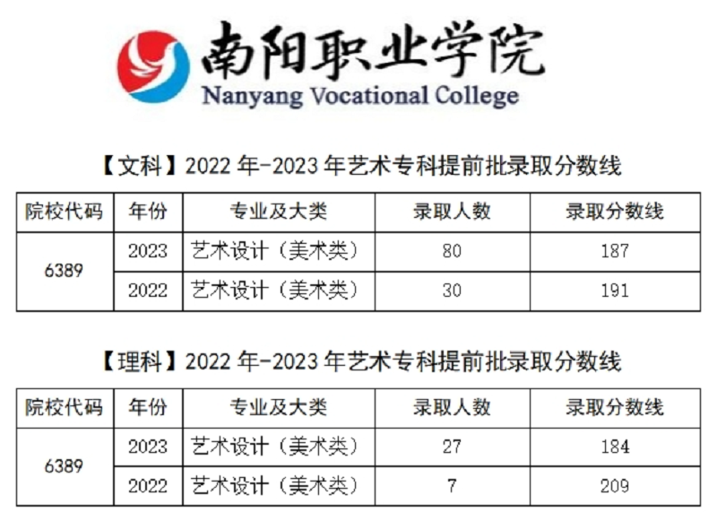 Q:请问学校2023年在河南省高职高专批文科、理科最低录取分数线分别是多少?