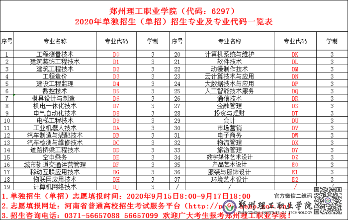 2020年郑州理工职业学院高职高专批单独招生(单招)志愿填报指南