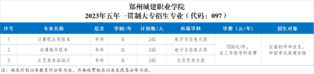 4. “五年一贯制大专”招生录取使用中招考试统考科目(语文、数学、英语、物理、化学、道德与法治、历史、体育和物理、化学、生物实验操作)成绩,满分700分,划定最低录取控制分数线为200分。