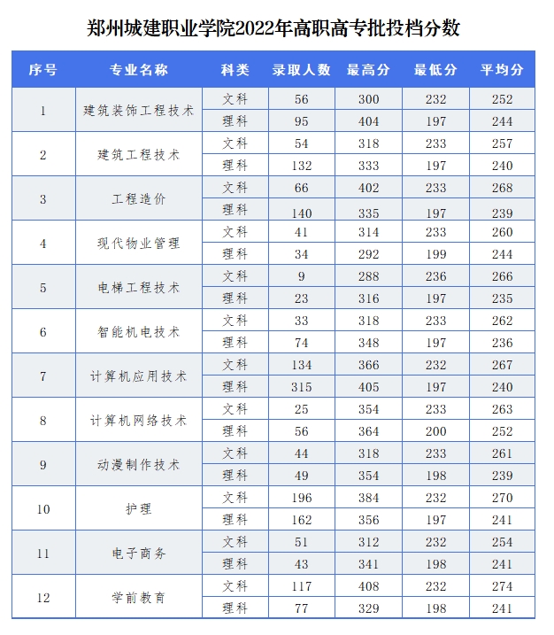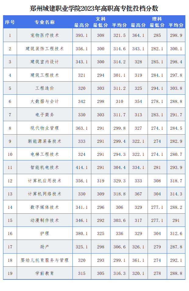 郑州城建职业学院往年分数线