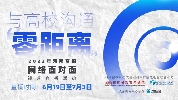 为帮助广大考生科学填报志愿,充分满足考生咨询需求,在考生和高校之间搭建交流平台,省教育考试院联合河南广播电视台,于6月19日-7月3日举办2023年高招“网络面对面”视频直播活动,考生可通过“大象新闻”客户端参与有关活动。