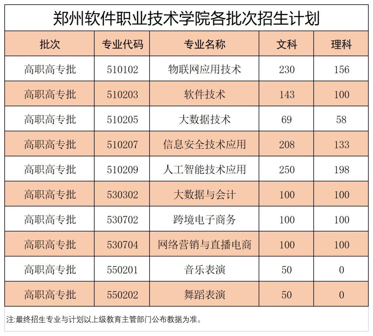 郑州软件职业技术学院2024年各专业招生计划