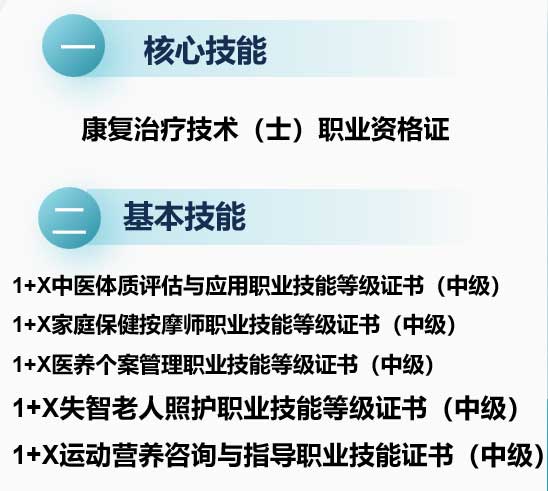 以病人为中心,以岗位胜任力为导向,优化基础与专业课程,实现理论与实训课程的一体化教学,模拟临床康复,有效融入“1+X证书”课程体系,以培养“一专多能”多层次、多元化、全方位高素质技术技能康复人才。
