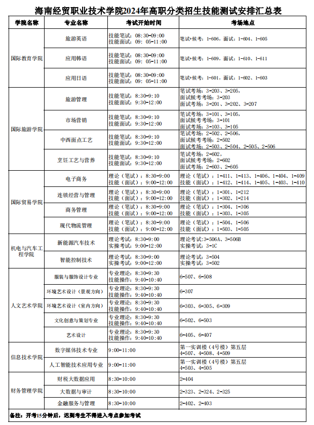 2024年海经贸高职分类招生技能测试考场安排表
