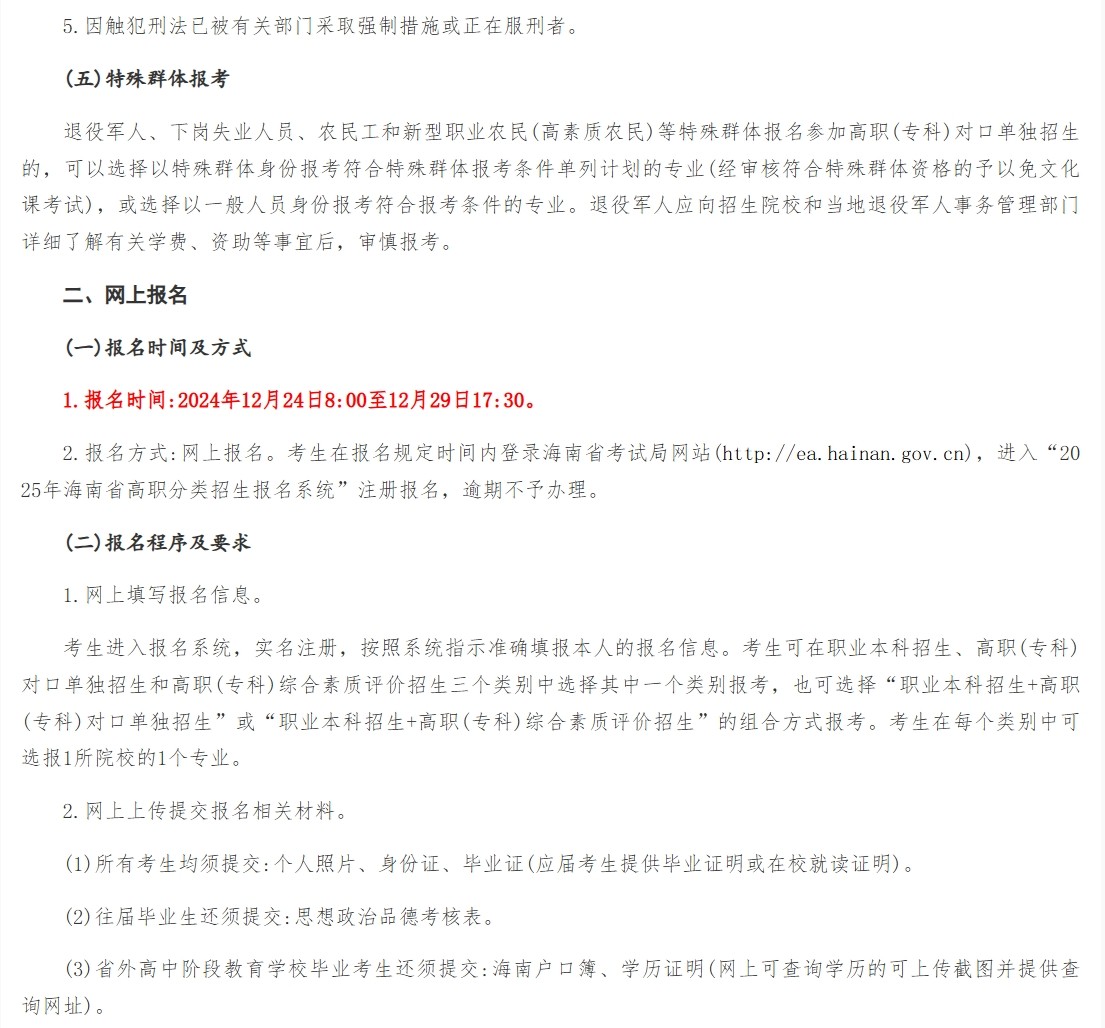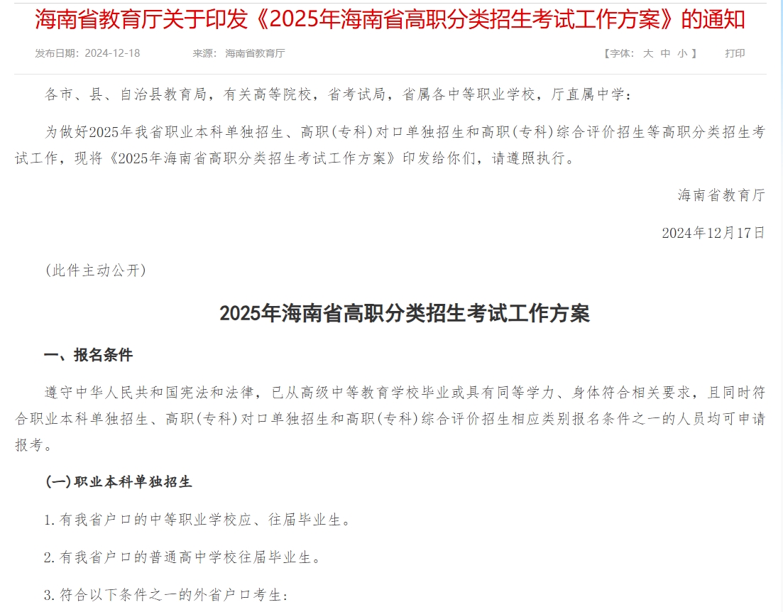海南省教育厅关于印发《2025年海南省高职分类招生考试工作方案》的通知