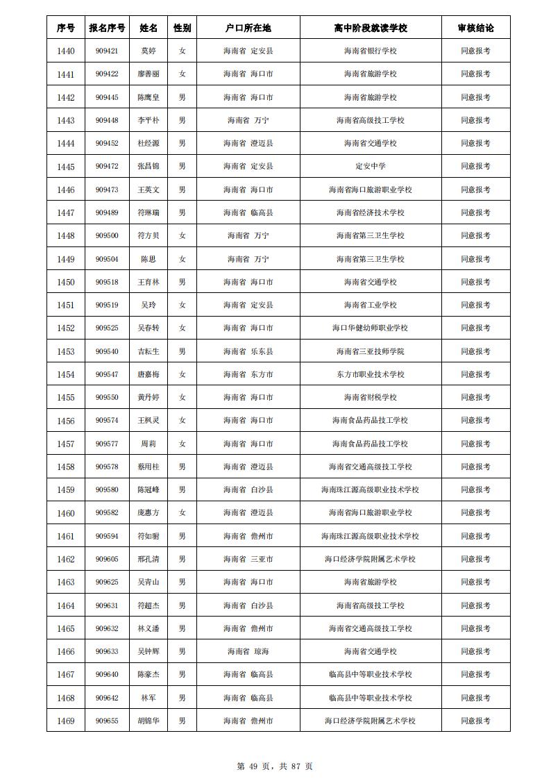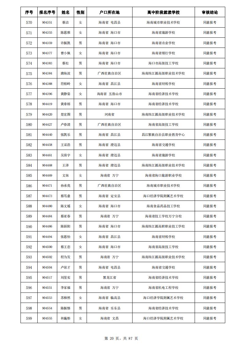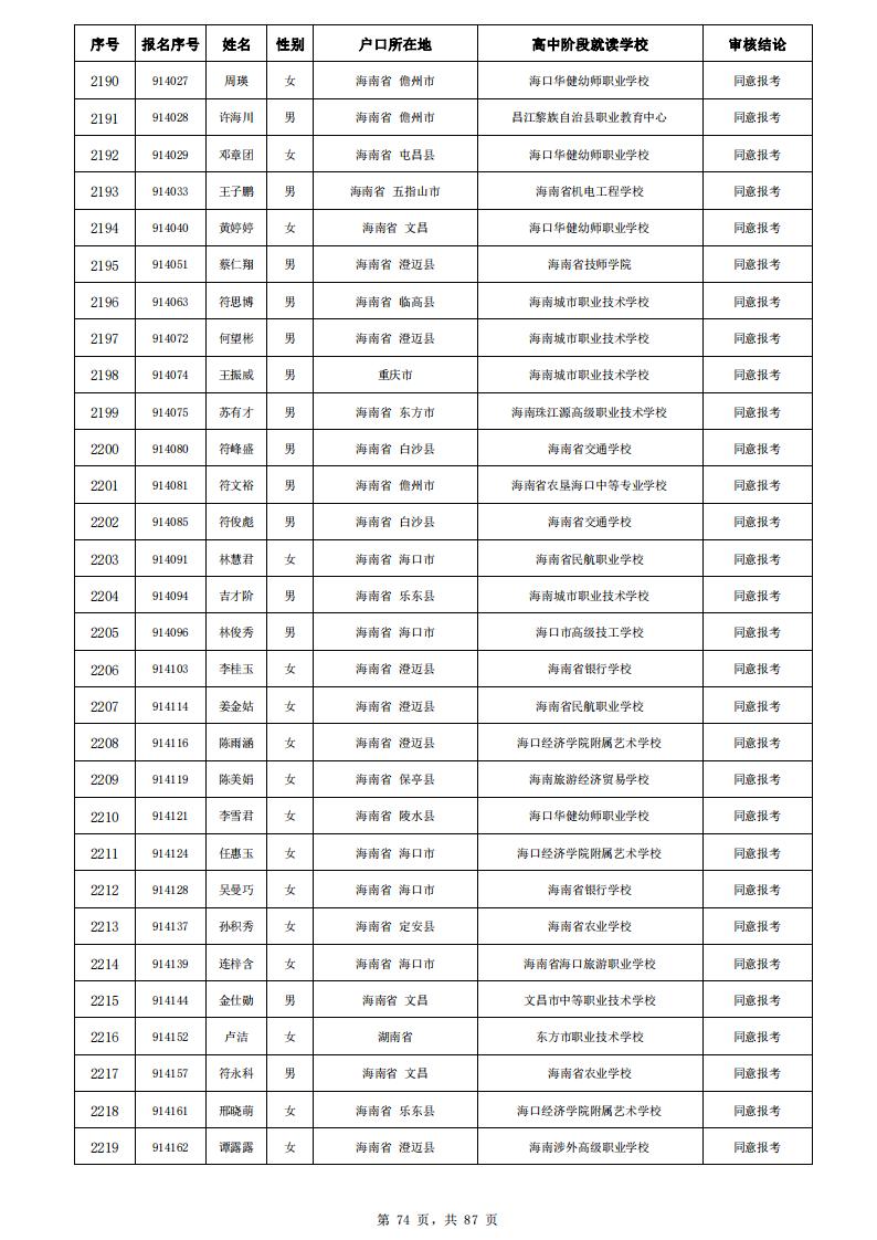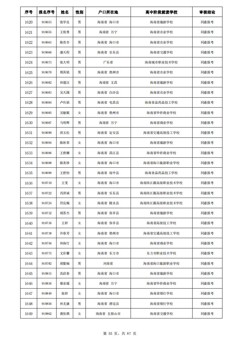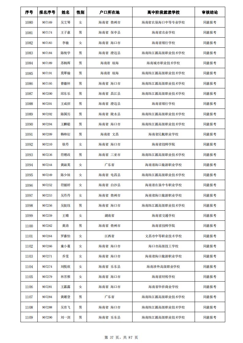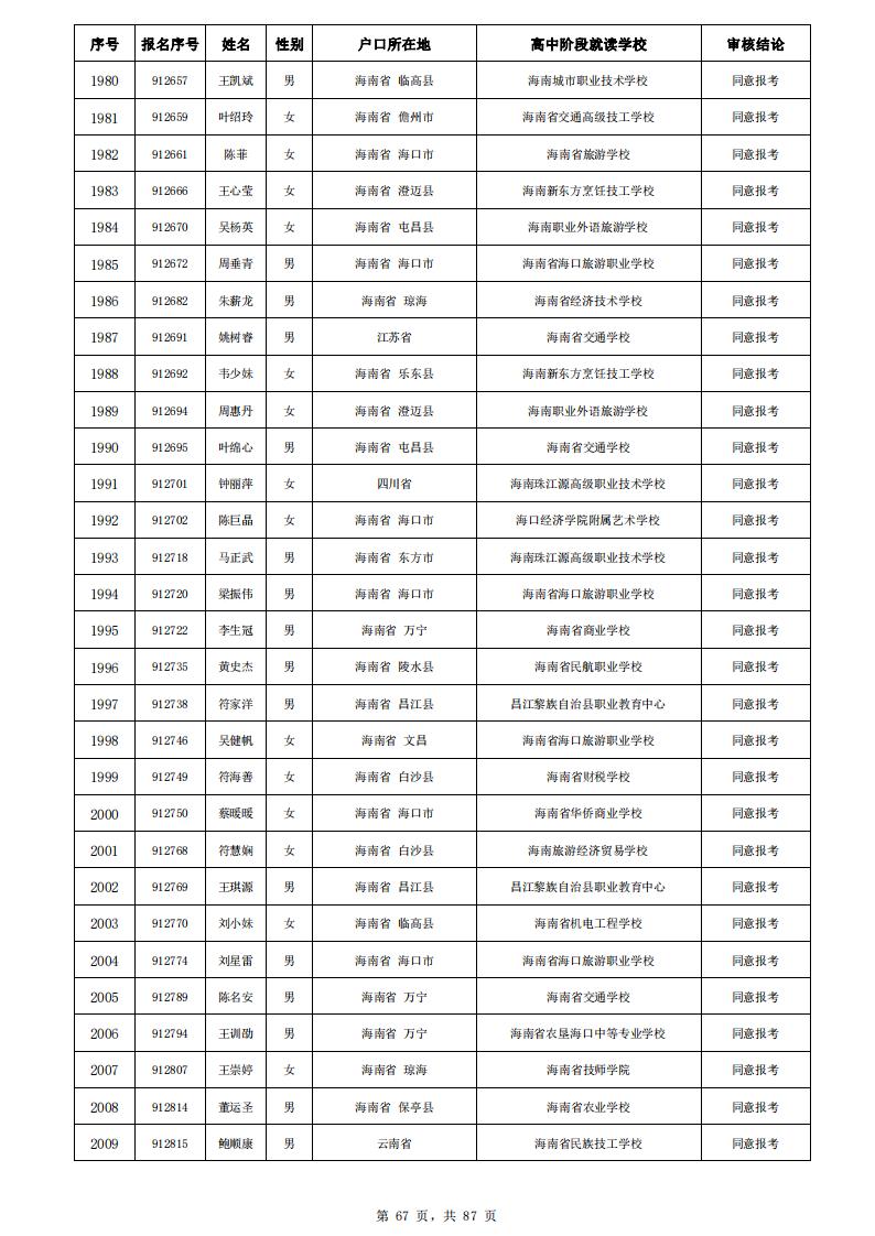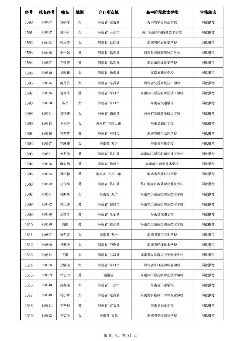 海南职业技术学院2024年海南省高职分类招生考试报名资格审查汇总表