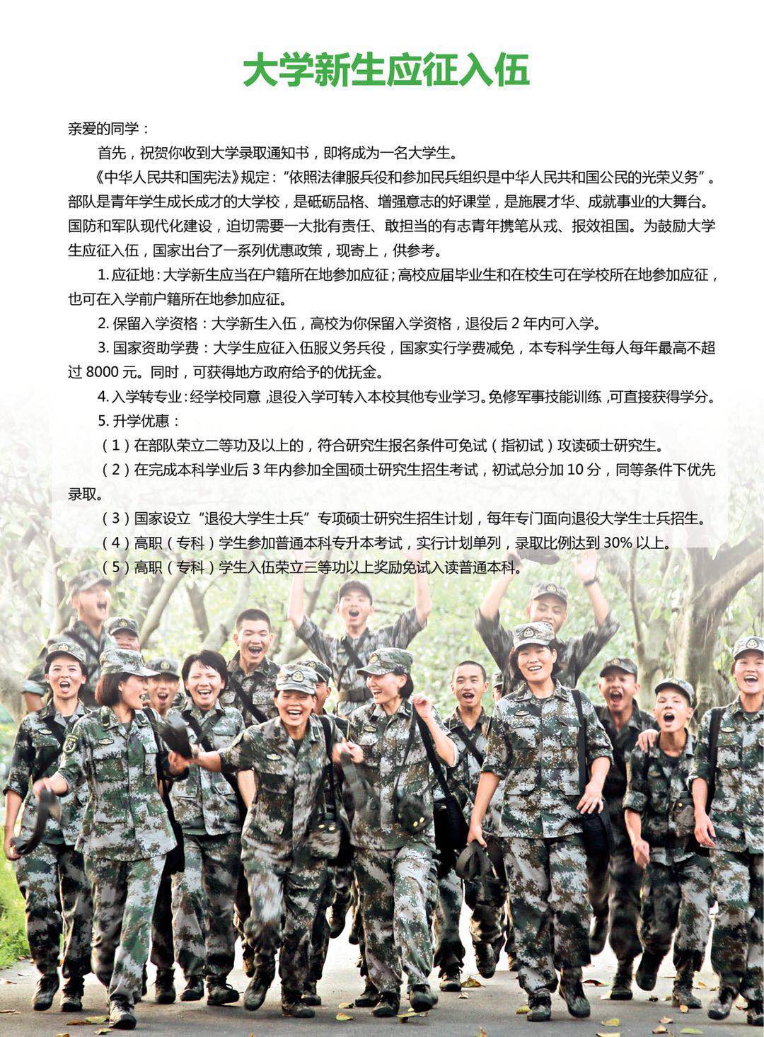 大学新生应征入伍宣传单