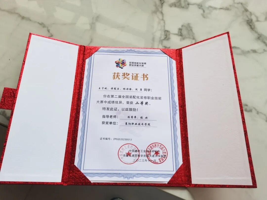 王宇航、沈康、杨诗语、黄冠玉 | 2022年 | 全国职业院校技能大赛“装配化装修”赛项 | 三等奖 | |